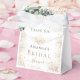 Un arrière - plan blanc décoré de verdure d'eucalyptus et de feuilles dorés et de poussière de parties scintillant en faux or. Avec le texte : Fête des mariées et Merci. Personnaliser et la mariée pour être le nom