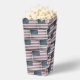 Drapeau américain patriotique Ballotins de pop-corn fête d'anniversaire. Design d'impression amusante pour home cinéma, anniversaire ou fête de mariage. Drapeau américain des États-Unis. Rouge blanc et bleu. Étoiles et rayures.