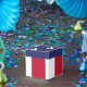 Drapeau national avec 50 étoiles blanches sur un canton bleu avec un champ de 13 bandes alternées, 7 rouge et 6 blanc. Les 50 étoiles représentent les 50 états de l'union et les 13 états originaux.