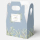 Elégante boîte de mariage feuille douce et verdure avec feuilles délicats aquarelle sur un arrière - plan bleu poussiéreux encadrant vos noms et date spéciale dans la typographie moderne. Le dos a un script or, merci message. Une façon parfaite de remercier vos invités ! Conçu par Thisisnotme©