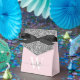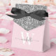 Boîte de faveur personnalisée élégante moderne et féminine rose et argenté avec monogramme personnalisé, nom initial, signature et écriture script. Ce design présente votre prénom dans un joli style d'écriture manuscrite avec un monogramme initial, au-dessus d'un bloc de paillettes de couleur gris argenté sur fond rose blush ou rose bébé clair. Ces boîtes-cadeaux féminines et élégantes sont idéales pour offrir des cadeaux, des cadeaux pour les invités et des friandises lors d'une fête d'anniversaire à venir, d'un barbecue, d'un anniversaire de 16 ans, d'une réception de mariage, d'une baby shower, d'une soirée de jeunes filles, d'une douche de mariée, d'un anniversaire de mariage et plus encore.