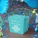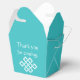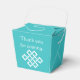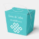 Offrez à vos invités, demoiselles d'honneur, groomsmen, ou à n'importe qui d'autre un régal spécial avec ces ballotins personnalisables avec un arrière - plan turquoise brillant avec un noeud de chance chinois blanc à l'avant et à l'arrière de la boîte. Les deux côtés présentent également un exemple de texte que vous pouvez customiser pour votre propre mariage ou événement. N'oubliez pas de consulter les autres produits du set Chinese Elegance in Turquoise pour créer un look vraiment coordonné pour votre événement.