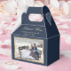 Elégant mariage bleu marine photo ballotin. Personnalisez facilement ces boîtes de faveur de mariage avec vos détails mariages. Nos ballotins de mariage personnalisés sont parfaits pour votre mariage bleu marine classique. Ces ballotins de remerciement personnalisés peuvent être customisés à d'autres occasions, comme des douches nuptiales.