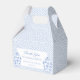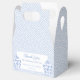Ballotins élégants avec un arrière - plan de clé grecque bleu et blanc, un pot de gingembre aquarelle de chaque côté du panneau avant, ainsi que le texte personnalisé.