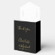 Élégante boîte de faveur mariage en noir et or avec des noms de script de signature stylisés et date spéciale dans la typographie moderne. Vous pouvez personnaliser avec votre propre message de remerciement sous le couvercle. Une façon parfaite de remercier vos invités ! Conçu par Thisisnotme©