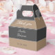 Elégant Mariage Merci de de script gris clair simple Ballotin. Design élégant et moderne dans les tons beige et gris foncé. Écriture tendance en blanc - ajouter les noms de mariée, les noms des sceaux du groom et la date du mariage.
