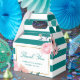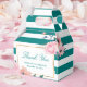 Personnalisez facilement ces boîtes turquoises et fleuries de mariage avec vos détails mariages. Ces ballotins de remerciement personnalisés peuvent être customisés à d'autres occasions, comme des anniversaires, des nuptiaux ou des baby showers.