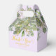 Ces boîtes de mariage violet clair et Merci or sont dotées d'eucalyptus vert et de feuilles verts et or. Pour une personnalisation plus avancée de cette conception, cliquez sur le lien personnalisé.