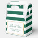 Personnalisez facilement ces boîtes de faveur de mariage rayées vert émeraude avec vos détails mariages. Ces ballotins de remerciement personnalisés peuvent être customisés à d'autres occasions, comme des anniversaires, des nuptiaux ou des baby showers.