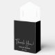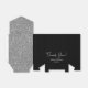 Ce ballotin élégant en Merci Mariage Parties scintillant Argent avec parties scintillant argentée brillante, Merci dans une police de script tendance et les noms heureux du couple en argent avec un élégant arc noir serait parfait pour les faveurs à votre réception de mariage. Ce serait très bien pour une confiserie, sur une table-cadeau de remerciement, ou à chaque endroit avec un service. Assurez-vous de commander suffisamment pour tous vos invités.