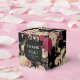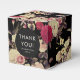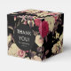 Elégante moody floral patron merci boîte de faveur mariage pour les invités comprend un beau rouge, rose rousse, blanc floral et vert motif sur un arrière - plan noir spectaculaire avec personnalisable texte de remerciement.