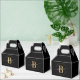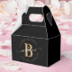 Fille, tendance, moderne, élégant, rose noir et or monogramme initial nom script personnalisé boîte de faveur monogrammée. Avec un monogramme initial et un nom script girly dans une police calligraphique à queue avec des fioritures et un cadre de cercle pointillé autour de votre nom. Idéal pour un anniversaire, une douche de nuptiale, un mariage, un anniversaire de 16 ans, une fête de naissance et une douche de bébé, une soirée d'enterrement de vie de jeune fille, un anniversaire de mariage et plus encore.