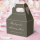 This elegant wedding favor box features an olive background with classic script typography for a refined, timeless look. Personalized with your names and wedding date, it’s an elevated way to present treats, small gifts, or welcome favors for guests. The structured design feels polished and intentional while coordinating seamlessly with classic, formal, and evening wedding stationery. A thoughtful finishing touch for couples who want cohesive wedding favors that feel elegant and memorable.