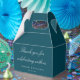 This elegant wedding favor box features a deep teal background with classic script typography for a refined, timeless look. Personalized with your names and wedding date, it’s an elevated way to present treats, small gifts, or welcome favors for guests. The structured design feels polished and intentional while coordinating seamlessly with classic, formal, and evening wedding stationery. A thoughtful finishing touch for couples who want cohesive wedding favors that feel elegant and memorable.