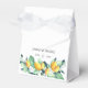 Boîtes cadeaux mariage personnalisées et élégantes pour vos cadeaux d'hôtes. Feuilles verts & lionnes, la typographie est en manuscrit et en lettres imprimées.