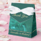 Élégantes boîtes de mariage florales uniques et distinguées pour vos invités. Message de remerciement avec les noms de la mariée et du marié.