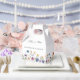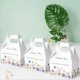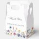 Pretty wildflowers decorate the bottom of this colorful spring wedding favor box. Watercolor floral borders are perfect for a garden ceremony outdoors while flowers are in bloom. Elegant script dances above a beautiful orange, purple, yellow, and blue botanical meadow on these custom boxes.