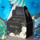 Fleurs blanches élégantes avec quelques feuilles dorés romantiques sur ballotin arrière - plan noir