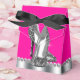 Belle parties scintillant rose chaud talon haute chaussure boîte de faveur. Ces élégants ballotins à talon haute parties scintillant rose chaud peuvent être customisés avec du texte et vous pouvez changer la couleur arrière - plan et la couleur arc.