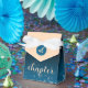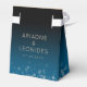 Faites de votre journée spéciale une fête inoubliable avec ce ballotin élégant, qui dispose d'élégants lettrages manuscrits et de blocs avec une douche de confettis sur fond noir-à-océanique-de-bleu-évocateur-de-la-Méditerranée et arrière - plans de pêche. Customisez comme vous le souhaitez. Design © W.H. Sim. Voir plus sur zazzle.com/expressionsoccasions