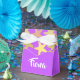Ajoutez votre nom sur ces étoiles-poissons colorés sur le design motif arrière - plan violet.
