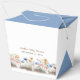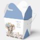 De mignons ballotins de baby shower de porc avec un bébé éléphant dans un casquette de cowboy et beaucoup de fleurs sauvages terriens. Les boîtes de style à emporter sont imprimées avec votre texte personnalisé à l'avant et à l'arrière, en typographie occidentale et une palette de couleurs bleu et marron doux. Veuillez consulter ma collection de Baby showers Eléphants Boho pour coordonner la papeterie, les jeux, les panneaux et la décoration de douche.