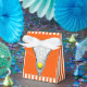 Fête d'équipe de crosse créative ou l'événement privilégie les filles lax stick et balle sur un arrière - plan orange.