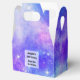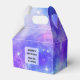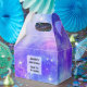Petit ballotin avec un arrière - plan abstrait cosmique. Couleurs vives et éclatantes de bleu clair, rose et violet. Des étoiles blanches éparpillées un peu partout.