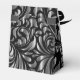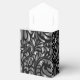 De magnifiques panaches et des tourbillons de plumes en argent "métallique" sont magnifiquement dramatiques contre un noir comme arrière - plan de nuit dans ce design étonnamment élégant, généré par ordinateur. L'argent, comme vous le savez peut-être, symbolise la richesse, le succès et le pouvoir tandis que le noir est l'exemple de la formalité, de l'élégance, de l'allure et du mystère. Rien d'étonnant à ce que ces deux-là soient l'une des combinaisons de couleurs "power". Avec l'ajout de l'arc noir, cette magnifique boîte de faveur/cadeau est un excellent ajout à votre mariage officiel ou fête du 25e anniversaire.