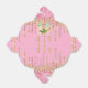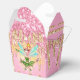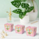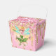 Un imaginaire amusant illustration inspirée d'une fille de cheveux blonde en tenue de pétale verte. Elle est assise sur des pattes croisées sur le sol et est entourée de poussière magique de fée, de papillons et de faux gouttes de parties scintillant rose et or scintillant. Ses jolies ailes de faïence irisées sont larges et encadrées par un arrière - plan rose doux.