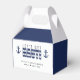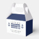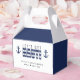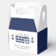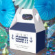 Boîte à cadeaux "Let's get nauti" rayée bleue et blanche pour une fête de bachelor / bachelorette. Personnalisez-la avec votre propre texte.