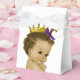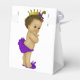 Boîtes de faveurs de fête de bébé princesse adorables avec une petite fille afro-américaine ethnique vintage portant une jolie couronne dorée et un nœud violet et un pantalon à volants. Vous pouvez ajouter du texte, changer la couleur du nœud de la boîte et ajouter une couleur de fond de votre choix à ces boîtes de faveurs de fête de bébé princesse violette.