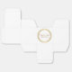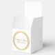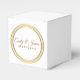 Boîte de faveur de la fête affichée en blanc avec le cercle éternel or sur l'avant avec les noms des jeunes mariés à l'intérieur du cercle. image sur l'avant seulement. Customisez cet objet ou achetez tel que conçu. Conseil : Cravate un ruban blanc, or ou coloré sur la boîte.