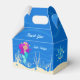Belle boîte de faveur de la fête de sirène personnalisée qui comprend une jolie fille aux cheveux roses avec une queue turquoise cool nageant dans l'océan bleu profond avec du sable, du corail et un hippocampe. cadeau d'anniversaire d'été cool pour les clients d'une fête de billard pour enfants ou de luau de plage pour enfants.