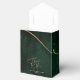 Un arrière - plan d'aquarelle dans les tons vert émeraude est surmonté d'une abstraite de lignes dorées fines et d'effets lumineux scintillants pour créer les pièces de cette belle suite mariage. Le ballotin mariage "Merci" présenté ici présente également la calligraphie "Merci" ainsi que les noms de la mariée et du marié et la date du mariage. Recherchez ID867 pour voir d'autres pièces et choix de couleurs pour cet ensemble.