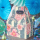 Petite ballotin avec une belle motif avec de jolies fleurs roses disposées sur le dessus, une motif rayée composée de rayures bleues et crème.