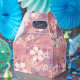 Cette ballotin présente des fleurs et des feuilles dans les tons pastel rose et violet sur un arrière - plan rose.