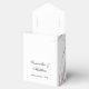Une boîte élégante et moderne de mariage en blanc, avec un motif de tourbillons roses doux rose et de grands fleuris gris sur le dos et l'avant rabat. Cette boîte cadeau élégante a été spécialement conçue pour correspondre à une suite mariage existante que vous pouvez trouver ici : https://www.zazzle.com/collections/soft_rose_and_gray_flourishes-119532891094763537
