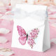 Flower arrangement of pink butterfly with rose Japanese cherry blossoms on white background.