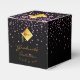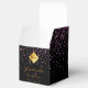 Catégorie 2021. Pour une fête moderne et branchée de remise des diplômes. Un arrière - plan noir chic avec confettis violet et rose. Texte : Le diplôme est écrit avec un grand script de style écrit à la main, des lettres d'or. Personnalisez et ajoutez un nom et une année. Décoré d'un casquette abstrait en faux or moderne, dessus de goût.