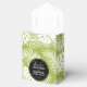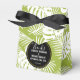 Mariage merci ballotins - avec un motif répétitif de grands feuilles de palme sur un arrière - plan vert olive. Moderne tendance et tropical. Un cercle noir avec une bordure intérieure dorée superposée avec vos détails personnalisés à l'intérieur.
