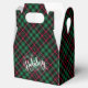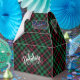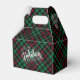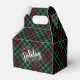 Un Ballotin au motif plaid vert et rouge sur un arrière - plan noir aux baies sèches et à l'accueil "Joyeuses fêtes à tous" OU "Envoi de la Cheer de Vacances" en deux polices décoratives en blanc avec une starburst blanche. Si vous voulez la deuxième salutation, appuyez sur le bouton personnaliser et activez-le à la place. OU masquez les deux salutations et ajoutez votre propre salutation. Il y a aussi un étiquette blanc rond à échalotes à l'intérieur de l'oeuvre.