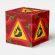 Triangle warning sign with a pepper and flame silhouette.
