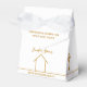 Ce ballotin immobilier moderne est la façon parfaite de féliciter un acheteur de maison pour son achat de maison ou de passer lors d'une maison ouverte. Félicitations pour votre nouvelle maison ou un autre message personnalisé pour le marketing open house.. Ces boîtes minimalistes en or et blanc présentent un dessin simple d'une maison pour une agence immobilière simple et chic.