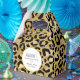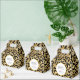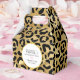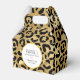Une boîte de faveur avec un motif élégant. Taches de léopard noires exotiques sur fond doré. Style sauvage et élégant. Un cadre circulaire blanc avec une bordure en faux or placée par-dessus avec votre texte personnalisé à l'intérieur.