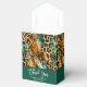 Découvrez la magie de la nature sauvage avec ces boîtes de faveur vertes et dorées, conçues avec minutie avec de délicats imprimés de fourrure d'animaux de safari.