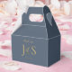Cette suite mariage avec ses fleurs luxuriantes et spectaculaires du blanc crémeux au rose vif, ses accents tourbillonnants d'or et ses magnifiques arrière - plans d'aquarelle bleu poussiéreux, crée une atmosphère élégante et romantique, donnant juste un indice de ce que les clients peuvent attendre lors de votre grand jour. Ce design ballotin minimaliste offre un modèle pour ajouter facilement vos initiales et votre date mariage en or sur un arrière - plan bleu foncé. Recherchez ID1022 pour voir tous les produits de cette suite mariage.