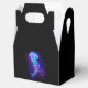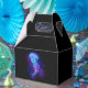 Grande méduse bleue, artistiquement dessinée, brillante, brillante, avec de longues tentacules sur arrière - plan noir avec bioluminescence violette. Méduse brillante.