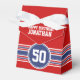 Rouge, Blanc et Bleu - Ce design sportif et de bandes de course est parfait pour tout athlète jouant au hockey, au football, au football ou au baseball. Vous changez les numéros en votre nombre de chance ou même un âge spécial pour une fête d'anniversaire. Un design robuste et masculin avec une zone pour toute Date Anniversaire - 5e, 50e, 70e ou autre!