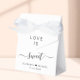 Ballotin blanc chic pour votre mariage qui présente "L'amour est doux" dans une typographie moderne simple et un script élégant avec des swashes, vos prénoms unis par un coeur et votre date de mariage.